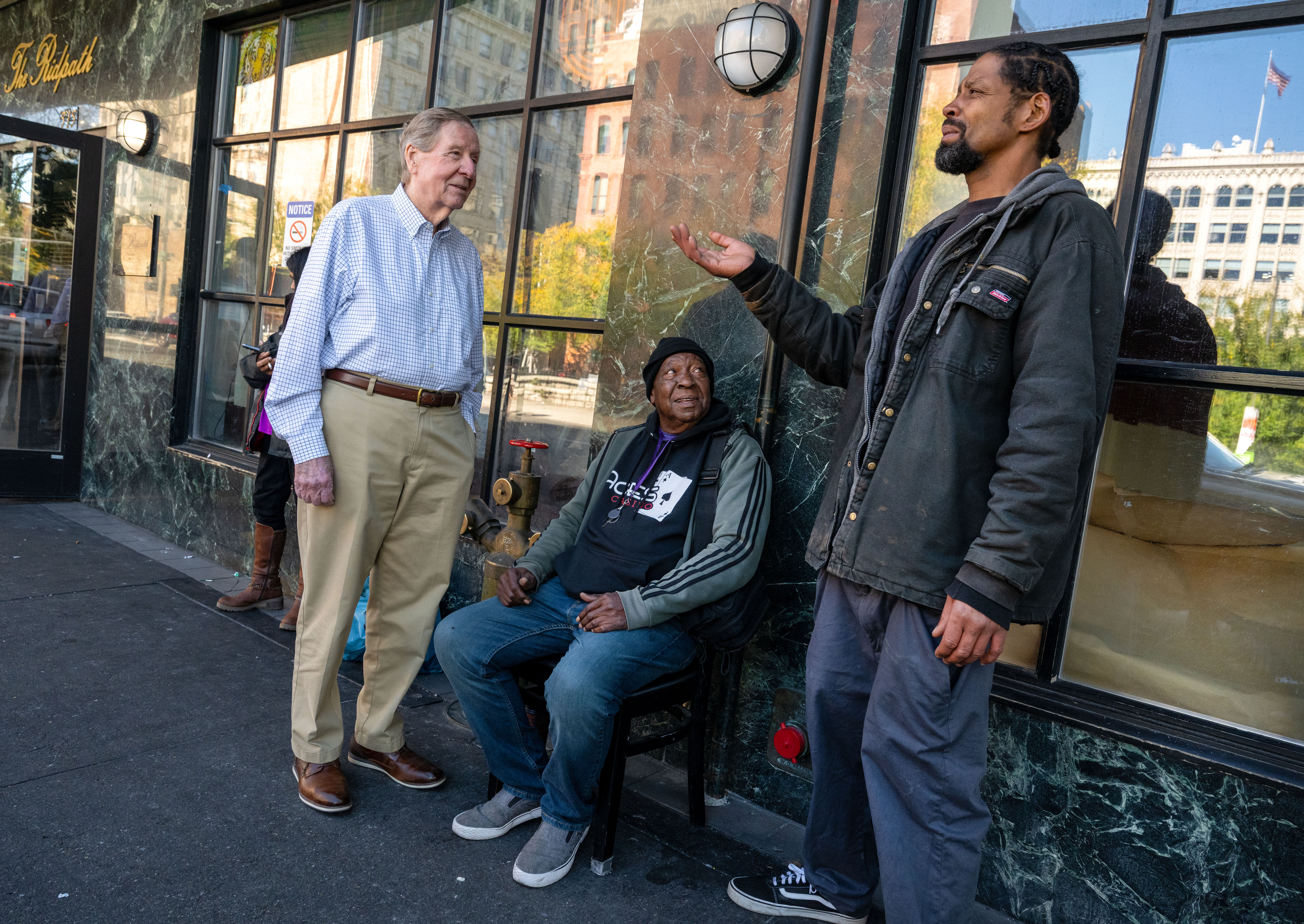 Paul Mann, one of the primary investors who revamped the Ridpath from a shuttered hotel into affordable apartments, lives on the top floor of the building that used to be Ankeny’s Restaurant. On a recent morning, he stood in the lobby chatting with his neighbors before opening the door to a reporter.