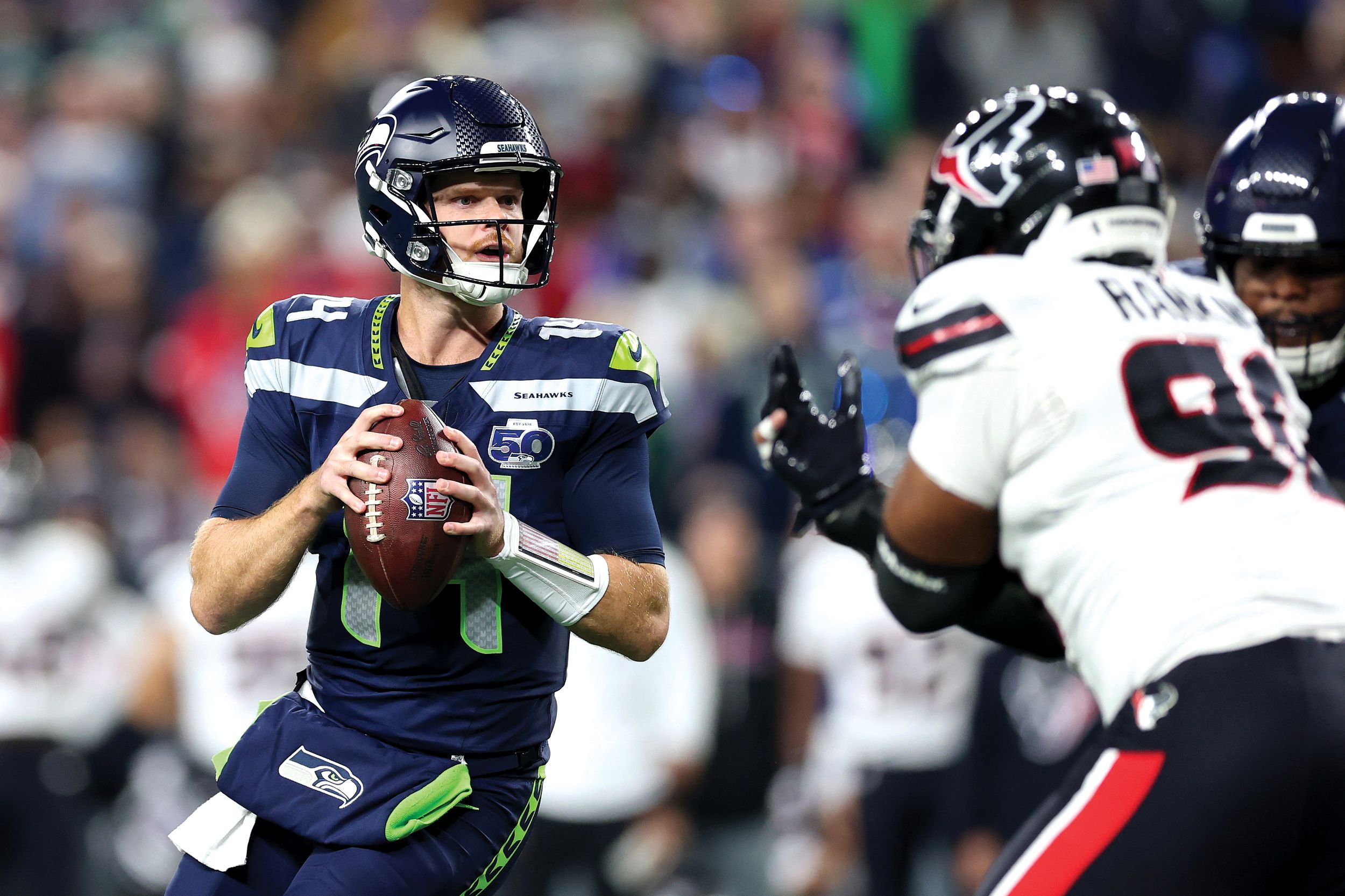 Seahawks: Hey, the Hawks had a game last night? A home game? Yes they did. And they won, 27-19 over the Houston Texas. But how they won was not the best. Sam Darnold struggled in the second half, the defense, while stout, dropped four passes they could, maybe even should, have intercepted, and a blocked field goal led to a six-point late-first-half turnaround. Bottom line? Seattle is 5-2 and still tied atop the NFC West. … There are always grades. And instant impressions. … Hey, Jaxon Smith-Njigba had another coming-out performance. Except no one east of the Mississippi was probably awake to see it.