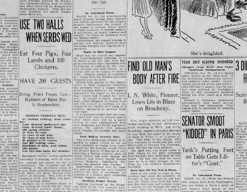 From 1925: Spokane’s “Serbian colony” spent the day celebrating a wedding – and what a celebration.