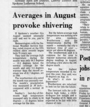 From 1975: August 1975 was the fifth coldest August in Spokane’s history – and one of the wettest.