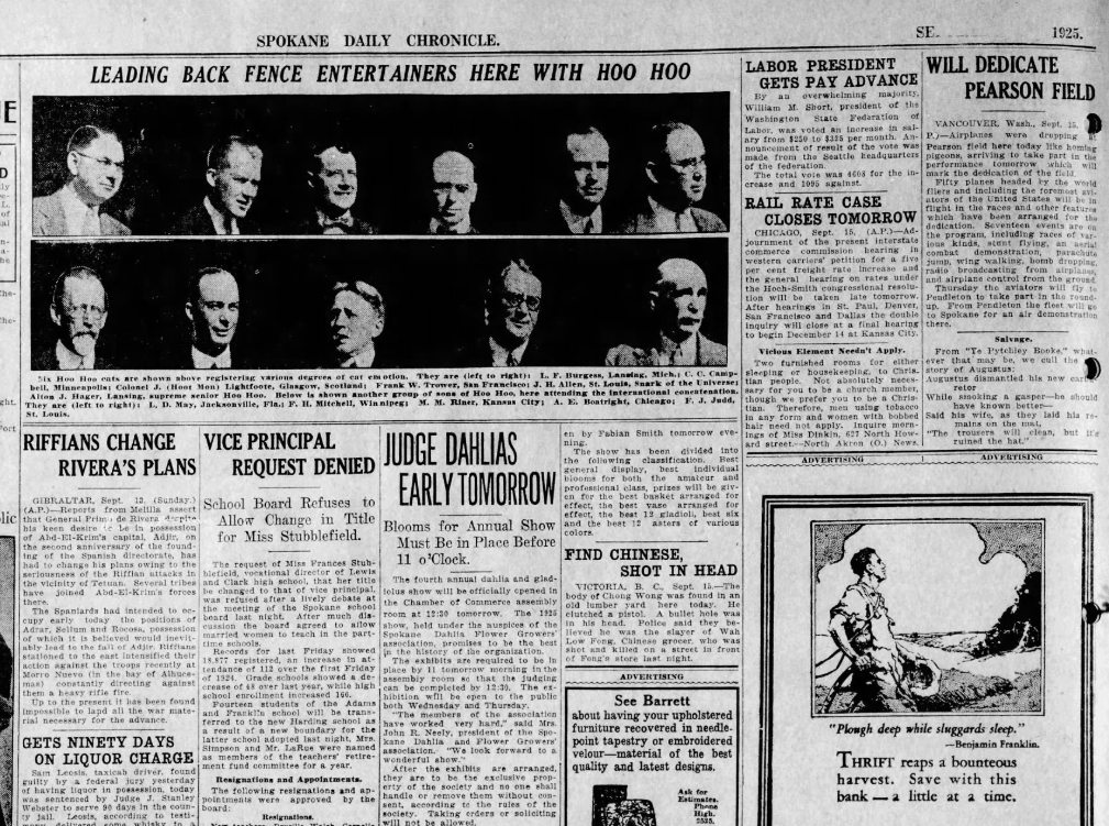 From 1925: The Concatenated Order of Hoo Hoo, the whimsically named lumbermen’s fraternal and service society, named its new officers during its 34th annual convention in Spokane.