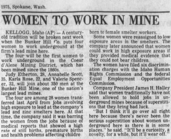 This day in history: Women were joining the ranks of Bunker Hill’s mine for the first time