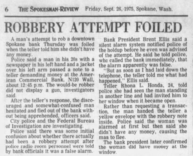 “The discouraged and somewhat confused man hesitated and fled out of the bank without being apprehended,” The Spokesman-Review reported.