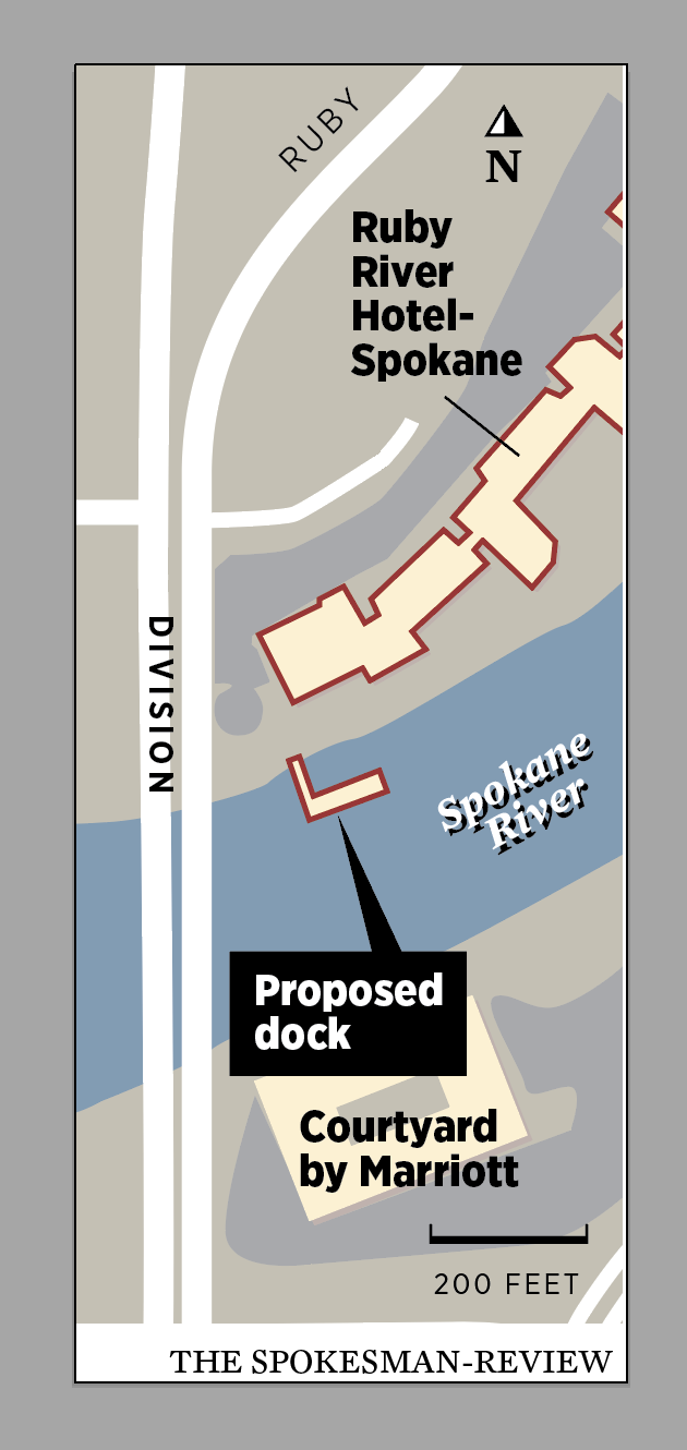The Ruby River Hotel wants to build a public dock on the Spokane River just outside of its property east of Division.