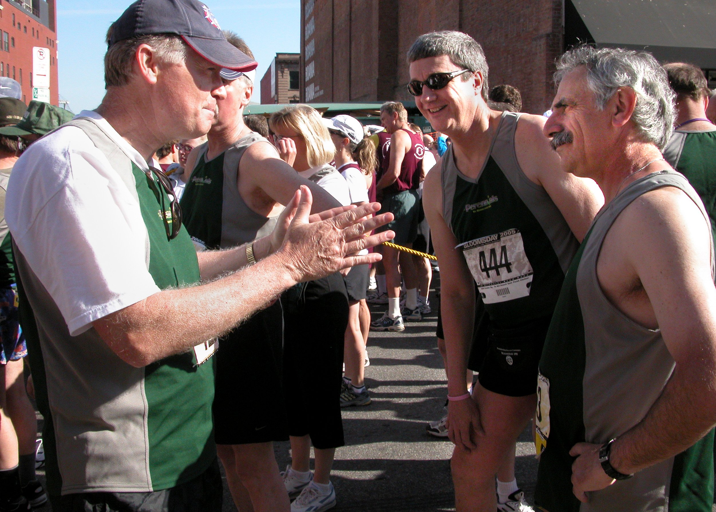 In addition to the experience, MacPhee enjoys seeing his fellow Perennials each year. Some of them are his former students. One of the younger perennials, Brian Kenna, was a middle school student in 1977 but practiced with MacPhee’s cross country team. Another, Bob Barbero, was his assistant cross country coach at University High School until MacPhee left.