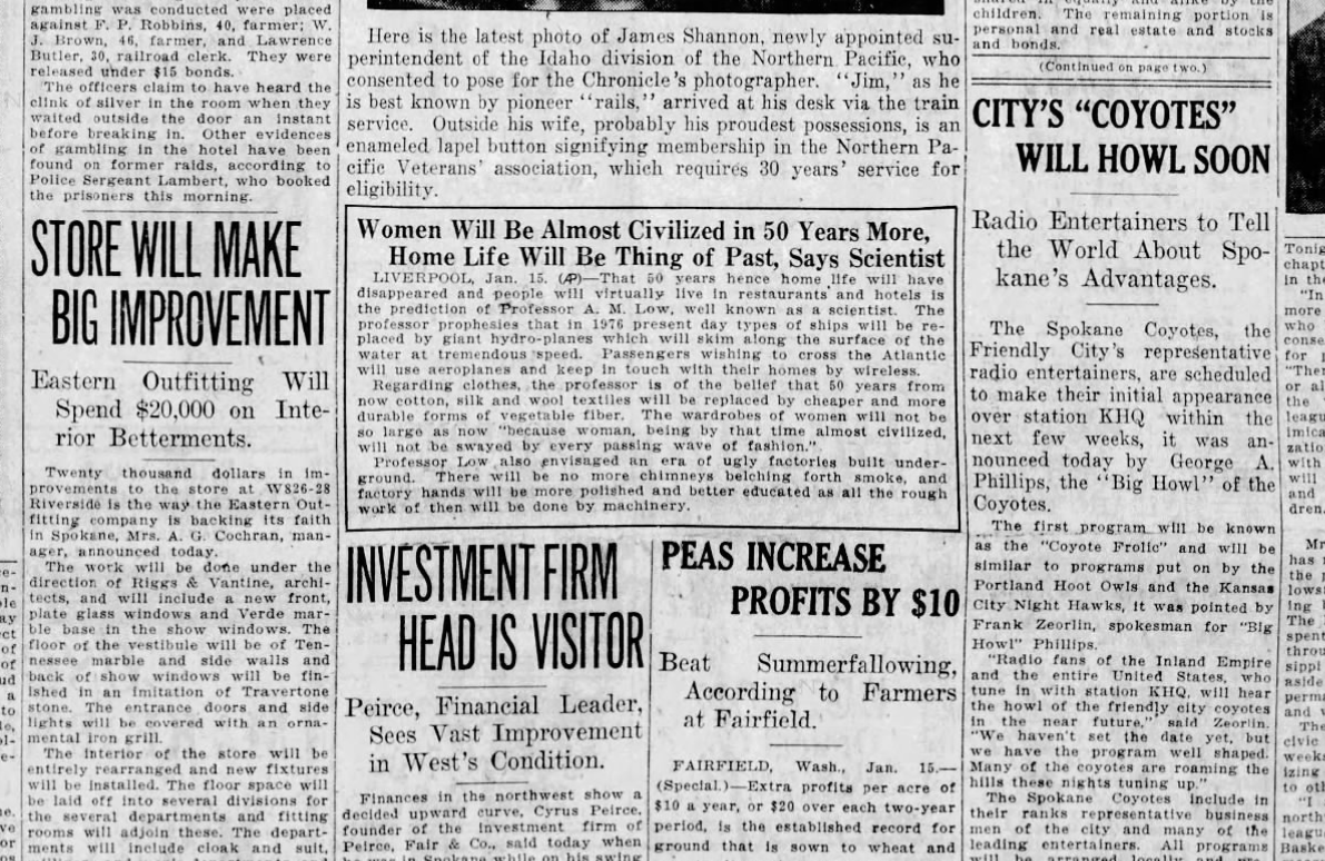 From 1926: The Spokane Coyotes would soon be howling on radio station KHQ.