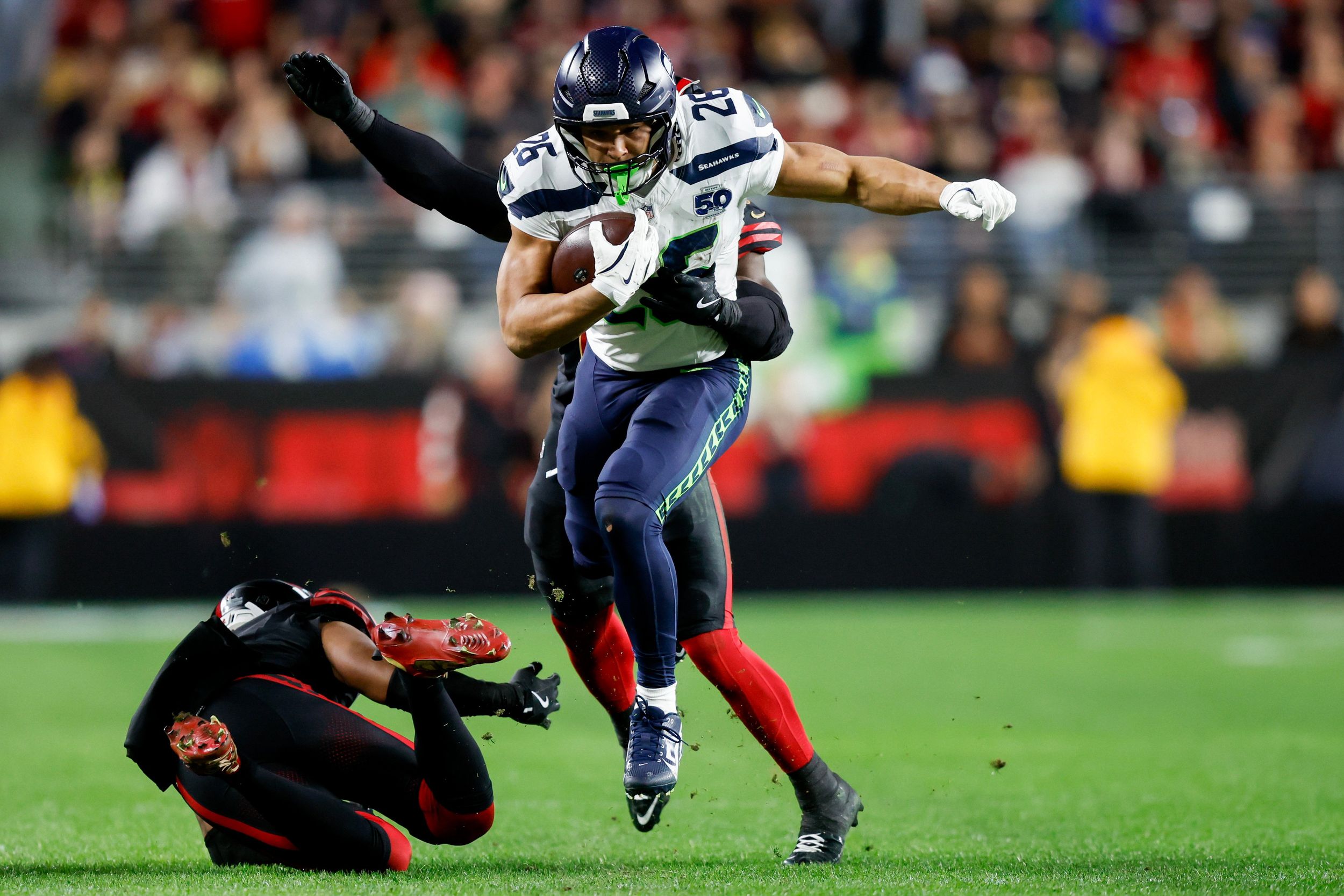 The battering ram running back will not play the rest of the Seahawks’ playoff run. And maybe not next season as well. As Mike Macdonald said yesterday, “Just hurts, man, it hurts that it’s going on.” Not just for Charbonnet but for the Hawks.
