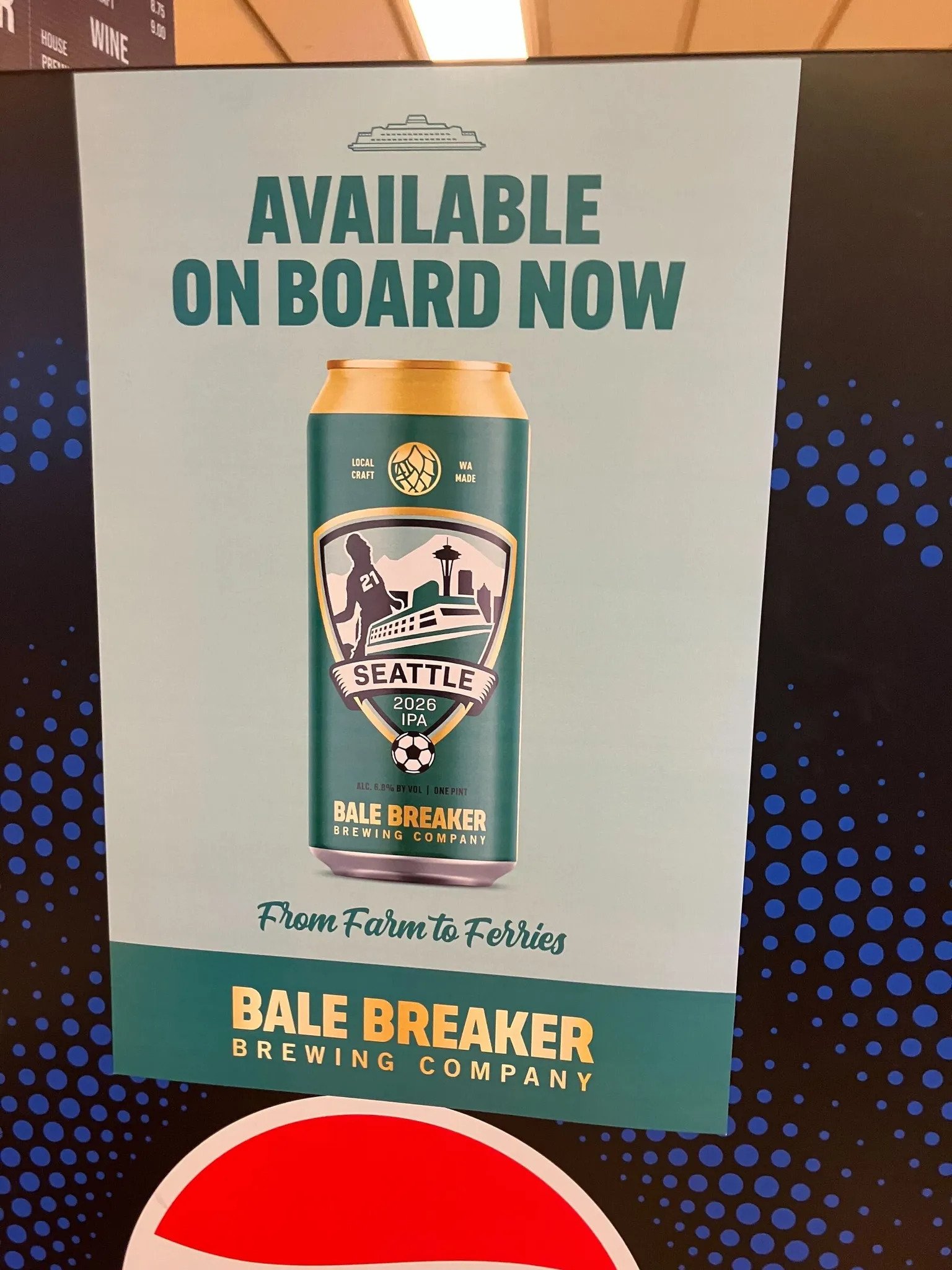 The beer – in a can emblazoned with an image of a ferry, a soccer ball and the Space Needle – is made with Simcoe, Citra and Mosaic hops grown in the Yakima Valley, and was the brainchild of Brian McDonough, general manager at Sodexo Live!, which supplies the ferries with all food and drink.