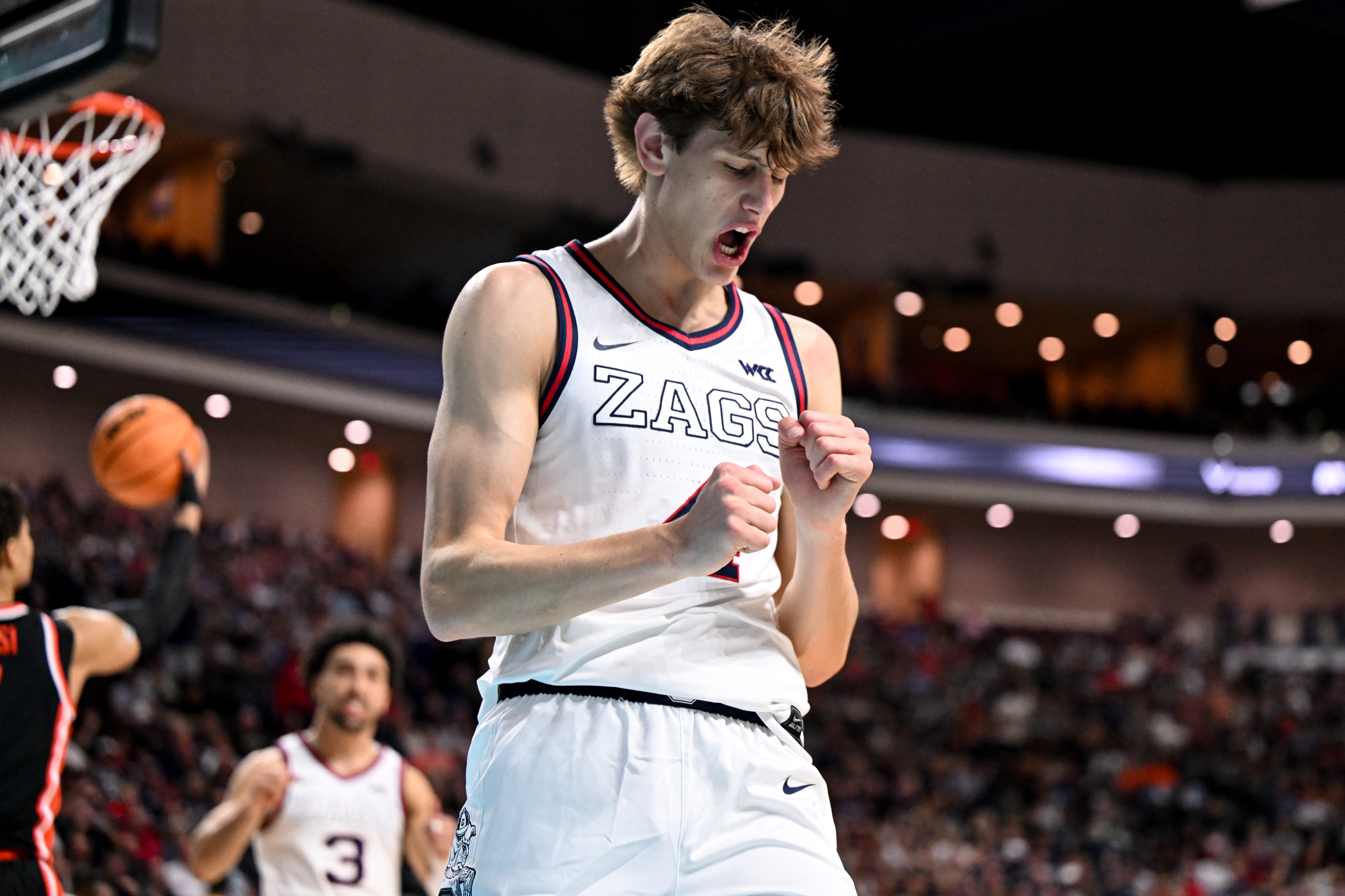 Saint-Supery and back-up point guard Smith combine to average 14.0 points, 7.4 assists and 5.1 rebounds per game. Smith, who started two NCAA Tournament games at Colgate and watched Ryan Nembhard pilot the Zags in last year’s tournament while redshirting, said the job description is lengthy for the position.
