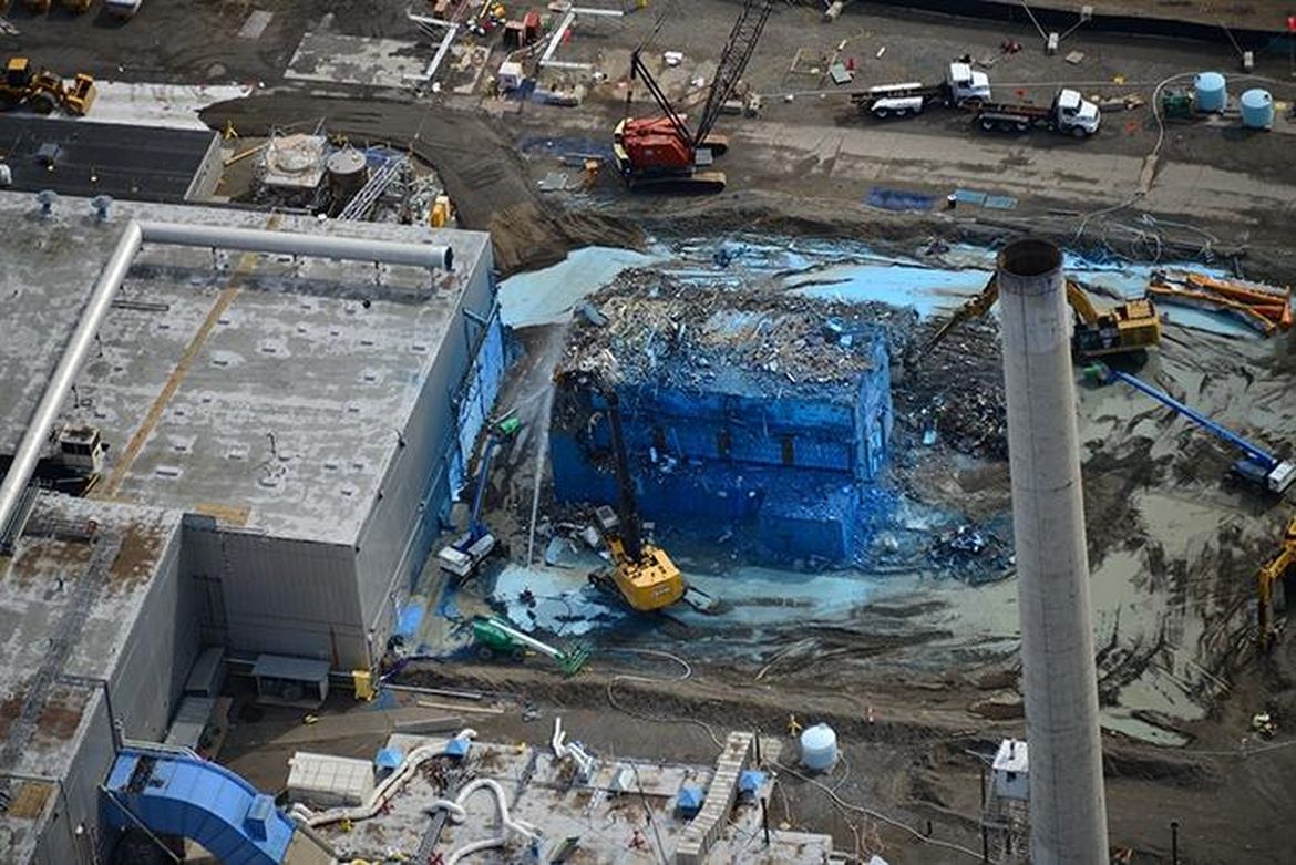 Stack demolished at Hanford’s Plutonium Finishing Plant